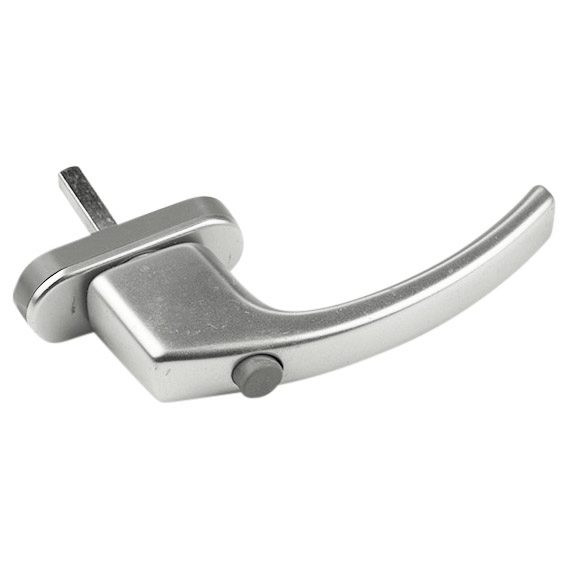 Eloxeret håndtag fra Hoppe, i buet udgave med tryk knap. Dette greb er blevet brugt af rigtig mange vindues fabrikker, bl.a. Cetonia, Rationel, FP Alu Group osv.